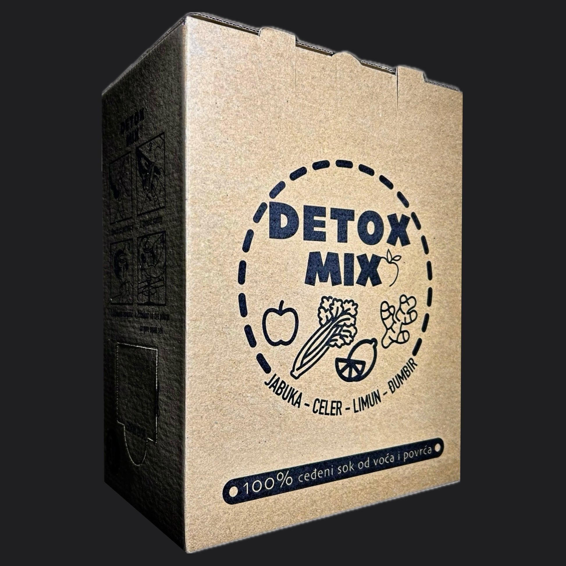 Пастеризовани цеђени сок од 55% јабуке, 30% целера, 10% лимуна и 5% ђумбира без додатка шећера, воде, боја и арома.