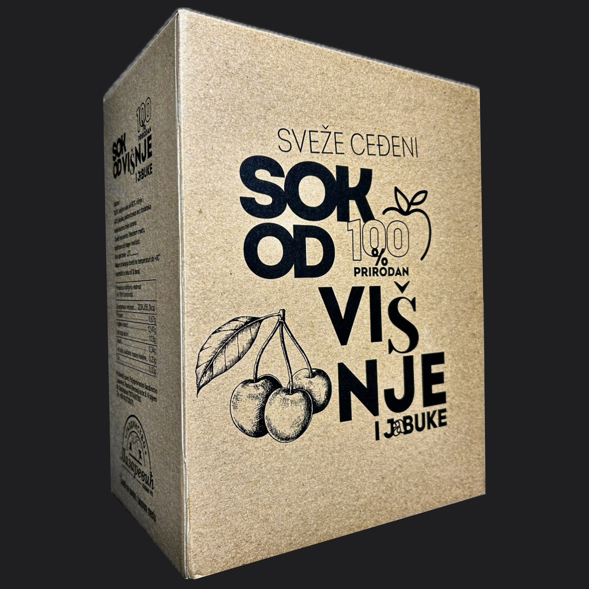 Пастеризовани цеђени сок од 60% вишње и 40% јабуке без додатка шећера, воде, боја и арома.